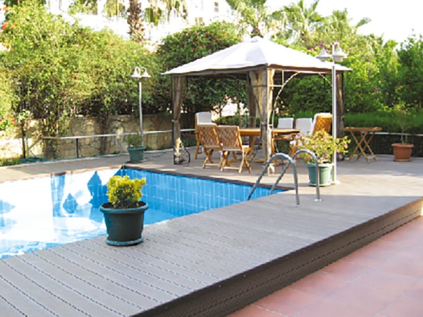 Taş, Traverten, Porselen ve Seramik Döşemeler;Çevre duyarlılığının her geçen gün arttığı dünyamızda, ahşap kompozit, dış mekan zemin uygulamaları için doğayla en dost çözüm olarak öne çıkmaktadır. Ürünlerimiz gelişmiş ve yenilikçi üretim teknolojisi ile verimliliği, çevreye uyumu ve yüksek kaliteyi birleştiren mükemmel ürünlerdir. Dış mekan zemin uygulamaları için mükemmel bir üründür! Çevre dostudur. Kullanım alanları:Teraslar, Havuz Kenarları, Verandalar, Bahçe Yolları, Marinalar, iskeleler, Yürüyüş Yolları, Plajlar ve Açık Alanlar’dır.